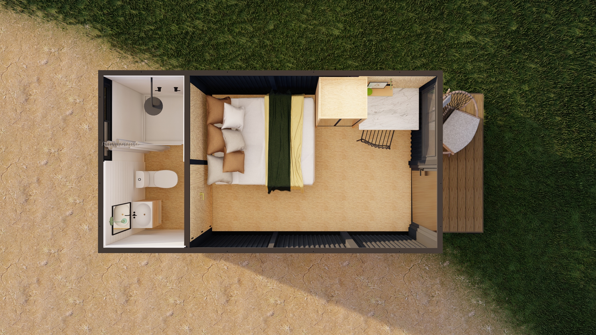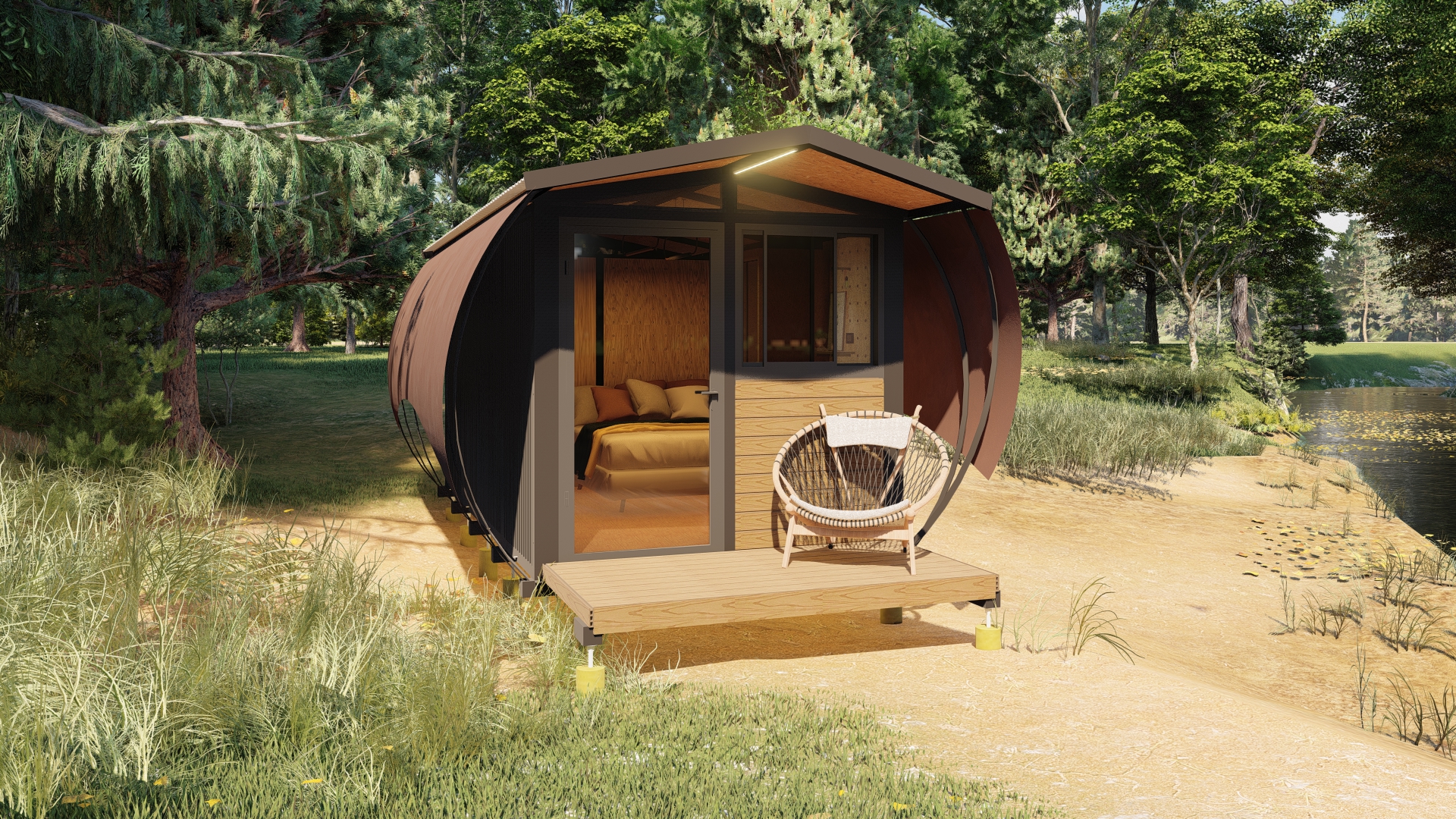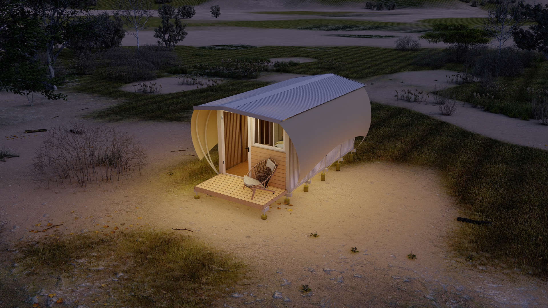 Sahara de Ecosuites te da la facilidad de desarrollar un glamping, pero con la duración y confiabilidad de un módulo de hospedaje profesional: diseñado para operar de forma constante, resistir el clima y requerir menos mantenimiento.